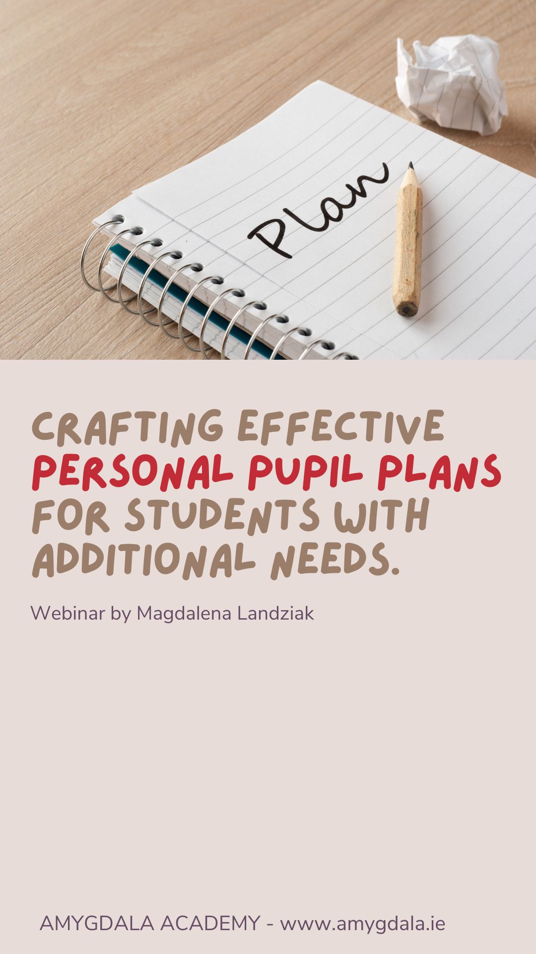 Creating Personal Pupil Plans (PPPs) is a crucial task for SNAs in ensuring that students with additional needs receive individualized support and education. This webinar will guide SNAs through the process of developing effective PPPs, from initial assessment to implementation and review. Participants will learn how to collaborate with teachers, parents, and other professionals to create comprehensive and dynamic plans that evolve with the student’s needs.